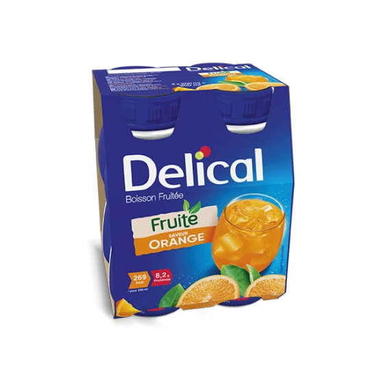 La Boisson Fruitée DELICAL est une boisson à base de jus de fruit concentré, riche en vitamines et minéraux. Elle est préconisée dans les situations de dénutrition, d’inappétence ou de besoins accrus en calories. La Boisson Fruitée DELICAL convient également en cas d’intolérance au lactose, de diarrhée ou de transit sensible, ainsi qu?en cas de déglutition douloureuse.