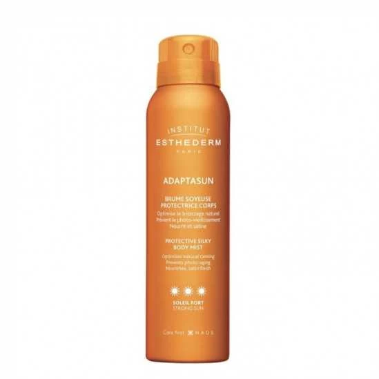 Institut Esthederm Adaptasun Brume Soyeuse Protectrice Corps 150 ml à la texture invisible et légère est une brume corps qui protège, optimise le bronzage naturel, préserve la qualité et la jeunesse de la peau au soleil.