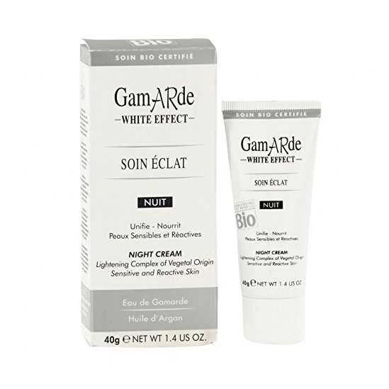 Le soin éclat nuit white effect de Gamarde est un soin visage unifiant et protecteur pour les peaux sensibles et réactives. Sa formule 100% d’origine naturelle contient de l’eau de Gamarde, de l’huile d’argan régénérante, un complexe GWE éclaircissant, du wintergreen et de la vitamine E pour atténuer les imperfections pigmentaires, diminuer la production de mélanine, unifier le teint et protéger l’épiderme.