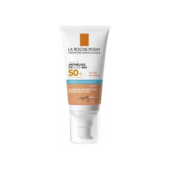 La Roche-Posay Anthelios UVmune 400 Crème Hydratante SPF50+ Teinté 50 ml est une crème hydratante très haute protection UVA/UVB, qui aide à prévenir le stress oxydatif généré par les infrarouges et la pollution. Elle protège des dommages cellulaires profonds.