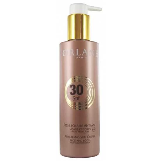 - Orlane Soin Solaire Anti-Ă‚ge Visage et Corps SPF30 200 ml est un soin pour le visage et le corps indiquĂ© pour les peaux claires et dĂ©licates au soleil et pour les premiers jours d’exposition. Il protège la peau des dommages causĂ©s par le soleil et prĂ©vient les rougeurs et les coups de soleil.