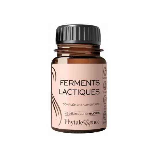 Phytalessence Ferments Lactiques 45 Gélules est un complément alimentaire à base de Lactobacillus Acidophilus, Lactobacillus Bulgaricus, Lactobacillus Rhamnosus, Bifidobacterium Longum et Streptococcus Thermophilus.