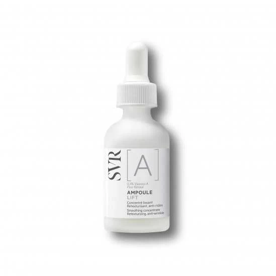 La vitamine A / le rétinol est un actif anti-âge de référence qui retexturise la peau et corrige les rides profondes. Puissant, 0,3% suffit pour faire peau neuve. SVR a sélectionné deux formes de vitamine A pure dont une encapsulée pour une efficacité à tous les niveaux de l’épiderme et une tolérance optimale pour les peaux sensibles. Leur association permet de lisser en douceur la surface de la peau et de régénérer l’épiderme.