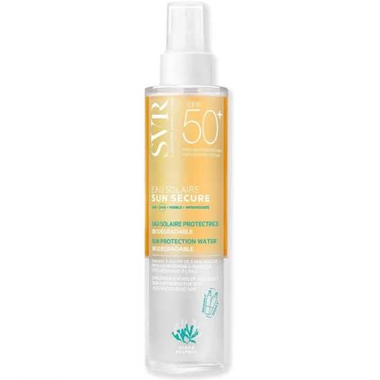 SUN SECURE Eau solaire SPF30 est une eau protectrice biodégradable à la sensorialité unique pour les peaux sensibles exposées au soleil.