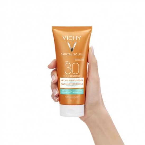 Pour les amoureux de la plage et de la piscine qui aiment passer leurs journées d’été au bord de l’eau, Vichy a développé le 1er lait qui protège la peau contre le sable, le sel, le chlore et le vent.