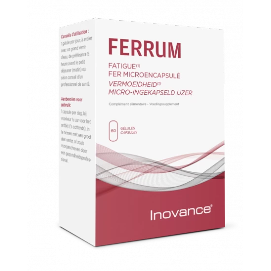 Agent de charge : cellulose microcristalline ; Lipofer® (amidon de maïs, diphosphate ferrique (pyrophosphate ferrique), antiagglomérant : lécithines de tournesol) ; acide L-ascorbique (Vitamine C) ; agent d’enrobage : hydroxypropylméthylcellulose ; antiagglomérants : sels de magnésium d’acides gras, talc.